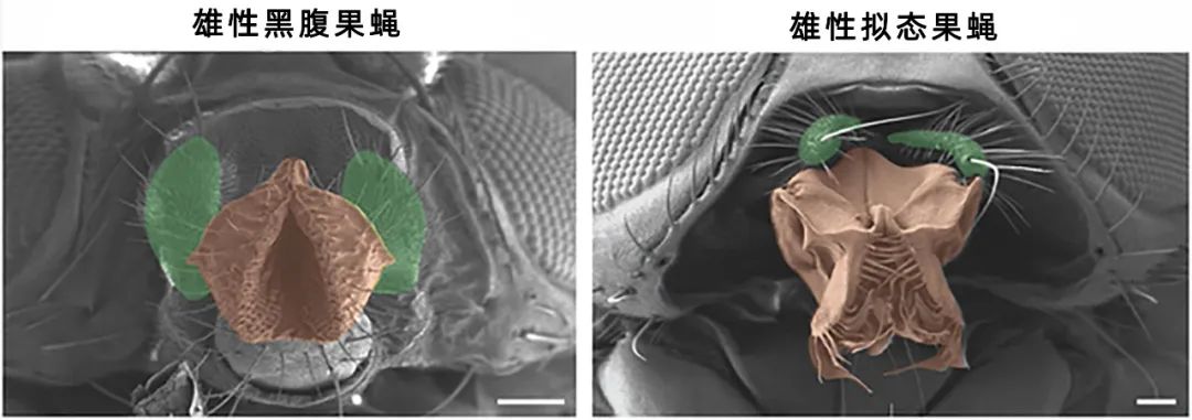 新實驗所選用的動物模型是實驗室果蠅。他們(men) 研究了一種名為(wei) pb的果蠅Hox基因,這種Hox基因指導著果蠅口器的形成。利用基於(yu) CRISPR的基因編輯技術,研究人員將實驗室常見果蠅品種——黑腹果蠅(Drosophila melanogaster)的pb基因,替換為(wei) 了其夏威夷近親(qin) ——擬態果蠅(Drosophila mimica)的pb基因。
