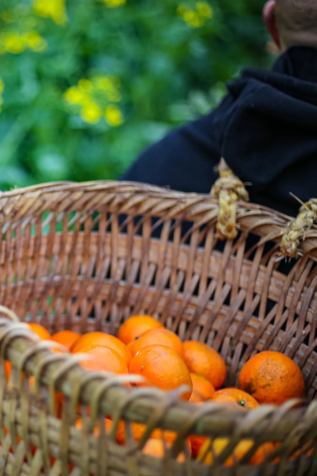 一籮柑橘,是人們(men) 豐(feng) 收的橘黃色。