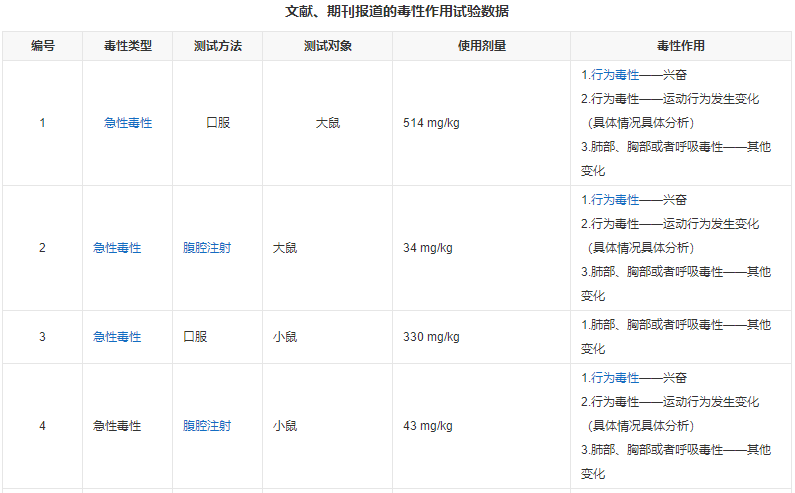 胡椒堿在實驗中對小鼠和大鼠的毒理作用,可看到具有興(xing) 奮效果。
