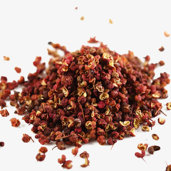 花椒在嘴巴裏給人的感受主要是麻,平時所見的花椒一般是紅色或紫紅色,也有部分花椒是偏黑、偏綠的顏色,被叫做青花椒。