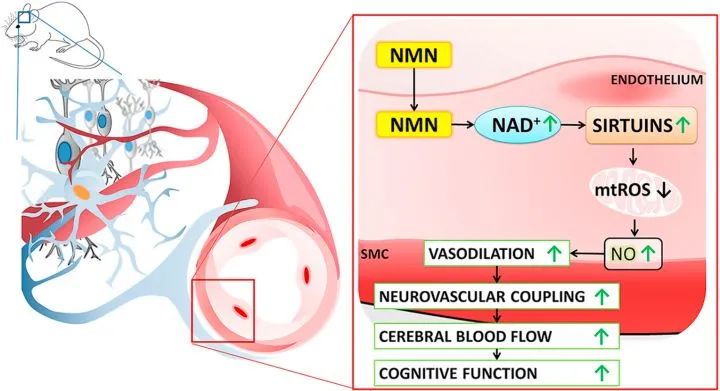 2 Tarantini, Stefano, et al. "Nicotinamide mononucleotide (NMN) supplementation rescues cerebromicrovascular endothelial function and neurovascular coupling responses and improves cognitive function in aged mice." Redox biology 24 (2019): 101192.