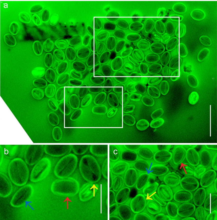 花粉簇,箭頭所示花粉不屬於(yu) 三溝花粉