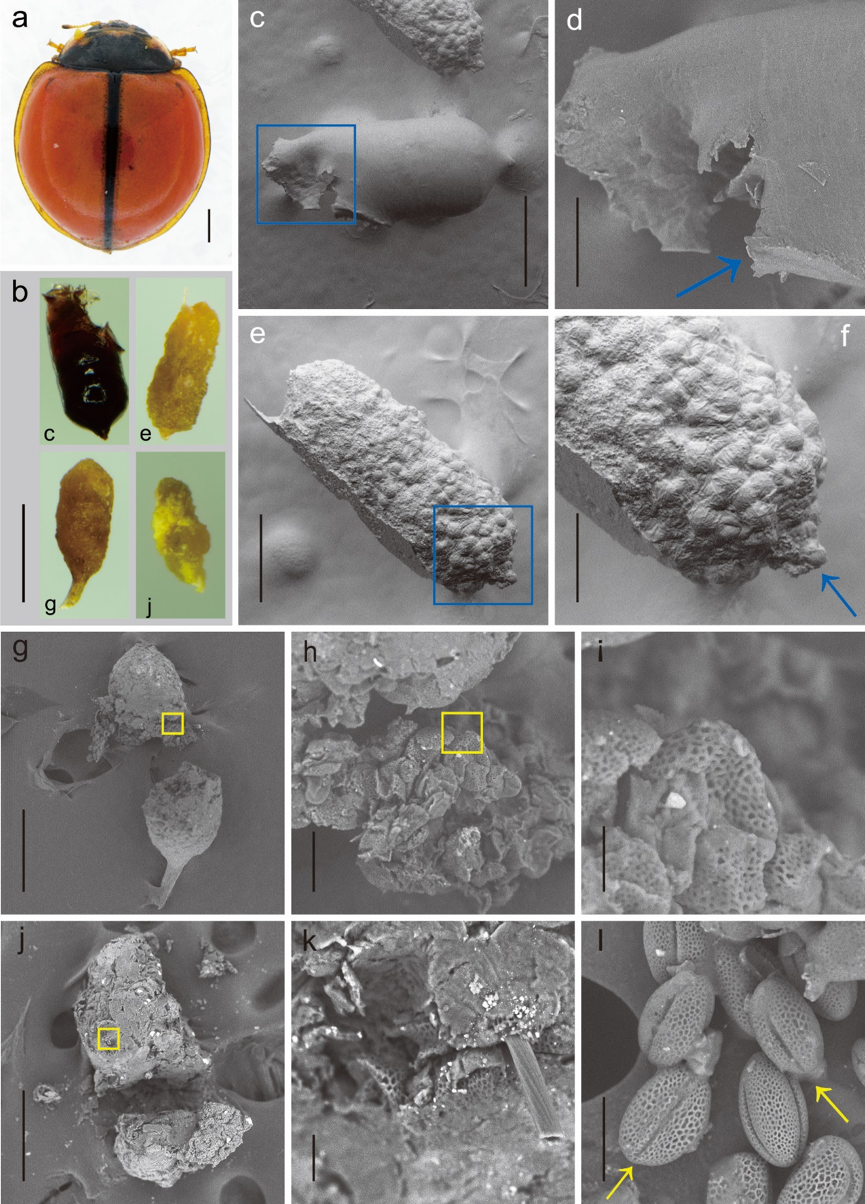 “通過化石來驗證甲蟲傳(chuan) 粉具有一定的不確定性,原因是大多數結論是基於(yu) 化石中的甲蟲是否有適於(yu) 傳(chuan) 粉的形態特征,或是與(yu) 以花粉為(wei) 食的現生類型來進行推斷。”包童說,為(wei) 了進一步驗證自己的猜想,他和團隊根據文中描述和結論,重新設計了現生昆蟲學和孢粉學實驗,結合理論分析與(yu) 實驗數據,發現了三個(ge) 疑問。