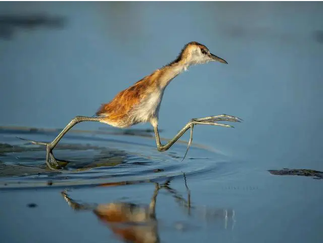 它們(men) 也被稱之為(wei) 長腳雉鴴or非洲雉鴴,這些水禽以能夠浮在水麵而聞名於(yu) 世,主要是它們(men) 腳趾十分纖長,可以以最小壓強站立在水生植物上,所以遠遠看去如同水上漂,但事實上,它們(men) 的幼鳥如果跑快了真的可以在水上行走!