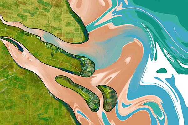 三角洲是指河流流入湖泊或海洋形成的堆積體(ti) 係,當河流奔流入海時,由於(yu) 河口變寬或者受潮流等因素影響水流逐漸分散,流速不斷下降,河流所攜帶的大量泥沙在河口段淤積,且淤積速率大於(yu) 海洋動力的侵蝕速率。再加上河流中含有大量以膠體(ti) 狀態存在的細黏土,這些黏土一遇到海水,在鹽的作用下就會(hui) 形成凝絮沉澱下來,因而在河流入海處逐漸形成扇麵狀的堆積體(ti) 。水下三角洲的形成亦是如此,以河口水下三角洲為(wei) 例,主要是由江河奔流中所裹挾的泥沙在入海口處遇到含鹽量較高的海水後凝絮淤積而成。