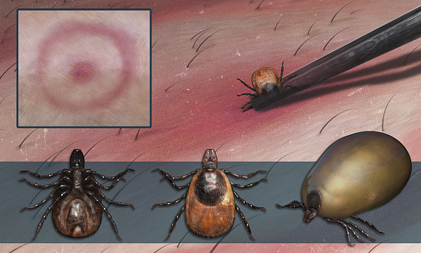 預防蜱蟲叮咬和蜱傳(chuan) 疾病,首先是做好個(ge) 人防護。去公園或野外踏青,要穿長袖衣衫,不要穿涼鞋,紮緊腰帶、袖口、褲腿,避免在草地、森林中長時間坐臥,裸露皮膚表麵塗抹含避蚊胺(DEET,不建議2歲以下嬰幼兒(er) 使用)的趨避劑可預防蜱蟲叮咬;其次是要做好自身檢查,從(cong) 野外回來盡快洗澡檢查,並特別注意自己的頭皮、耳後、頸部、腋窩、膕部等這些有皮膚褶皺的地方,是否有蜱蟲叮咬,因為(wei) 蜱蟲的唾液裏的一些成分有麻醉作用,可以讓人感覺不到疼痛,如果攜帶寵物的話,切記同樣檢查寵物身上是否有蜱蟲附著。