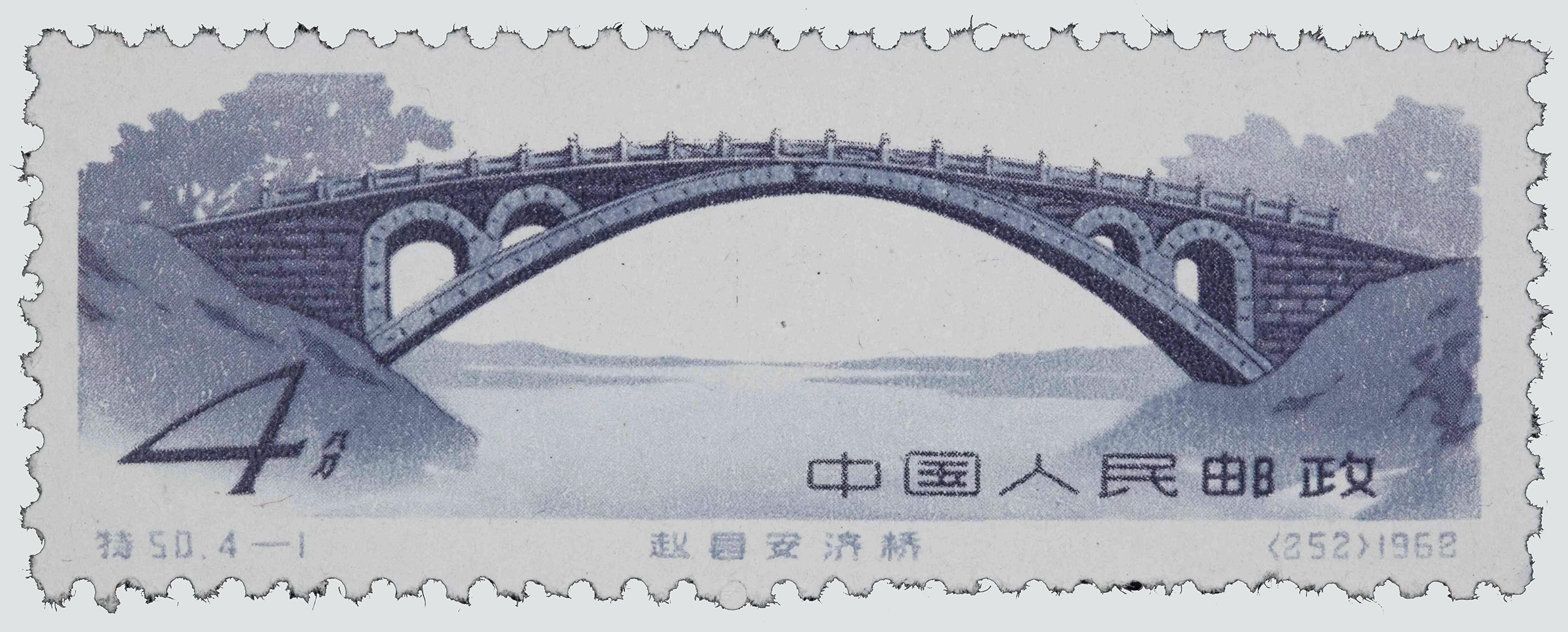 我從(cong) 小喜愛集郵。1962年,我才十幾歲時就收藏了當年中華人民共和國郵電部發行的特50《中國古代建築—橋》郵票,這套郵票共有4枚,圖名分別為(wei) 趙縣安濟橋、蘇州寶帶橋、灌縣珠浦橋和三江程陽橋。安濟橋又稱趙州橋,這是趙州橋的圖案第一次出現在新中國的郵票上,作為(wei) 國家的名片,60年來傳(chuan) 遍了世界各地,成為(wei) 中外文化交流的珍品,特別為(wei) 海外炎黃子孫所珍藏。