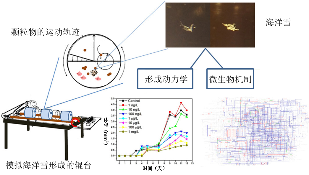 圖為(wei) 模擬海洋雪形成過程,探究海洋雪形成的動力學和微生物機製。付傑 繪圖