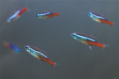 霓虹脂鯉聚集成群。