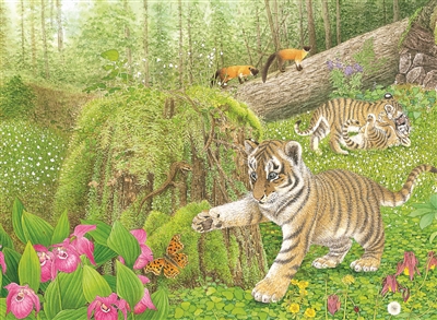 書(shu) 中還為(wei) 小朋友留下了很多謎團。比如,虎媽媽為(wei) 什麽(me) 會(hui) 給虎寶寶換洞穴?老虎是獨居動物嗎?東(dong) 北虎捕獵的成功率高嗎?在自然界中,虎寶寶遇到的最大危險是什麽(me) ……孩子們(men) 可以從(cong) 書(shu) 中了解東(dong) 北虎的發育過程、身體(ti) 特征、捕獵行為(wei) 、生活習(xi) 性,以及生存現狀,等等。