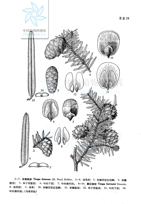 《中國植物誌》中的雲(yun) 南鐵杉線描圖。 圖片來源:中國植物圖像庫