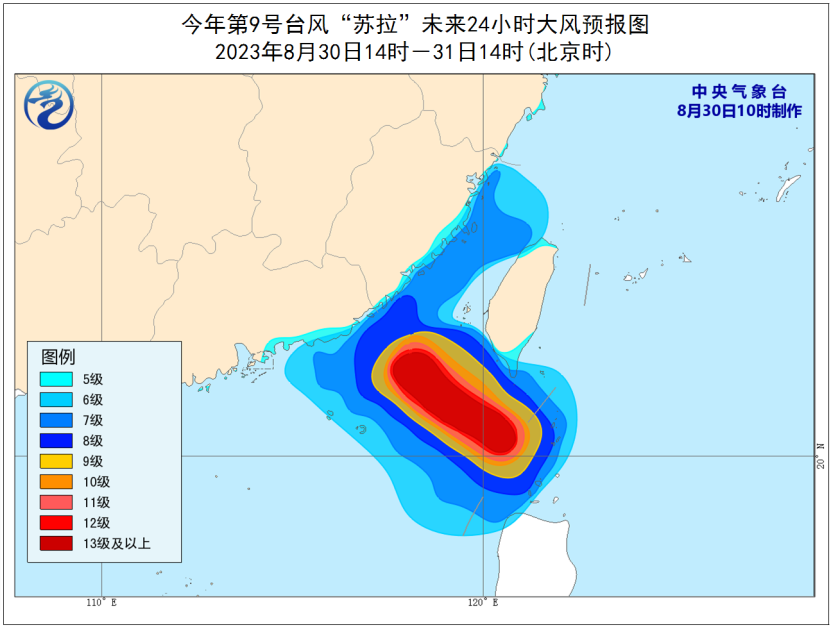 中央氣象台8月30日10時發布台風橙色預警,中國氣象局30日11時啟動台風二級應急響應。
