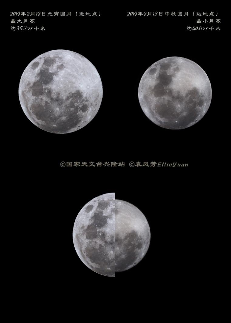 如果把最小滿月和最大滿月都用同樣的攝影設備拍下來,可以得出兩(liang) 者的對比。