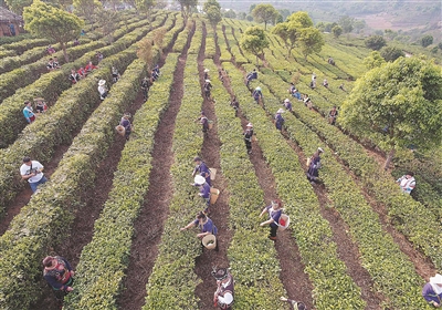 圖3為(wei) 景邁山翁基古寨采茶忙(無人機照片)。新華社記者 唐如峰 攝