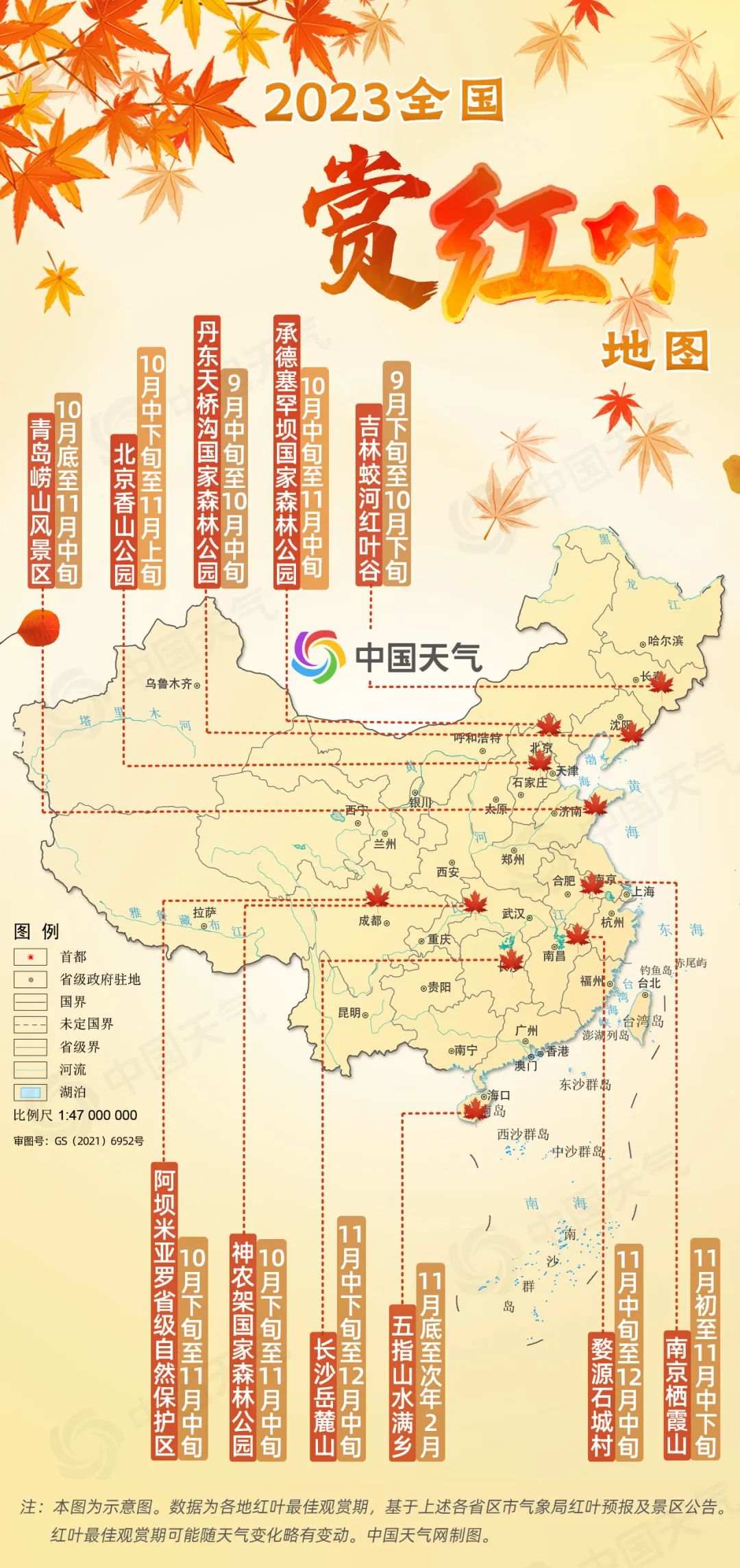 紅葉是眾(zhong) 多秋色中最耀眼的一道風景,觀賞紅葉也是古往今來人們(men) 秋季出遊的保留項目。今年秋天這抹熱烈的紅,你想和誰一起分享?中國天氣網友情提醒,紅葉最佳觀賞期較短,而且容易受天氣影響出現波動,小夥(huo) 伴們(men) 要及時關(guan) 注氣象部門及景區發布的相關(guan) 服務信息,合理規劃出遊時間。