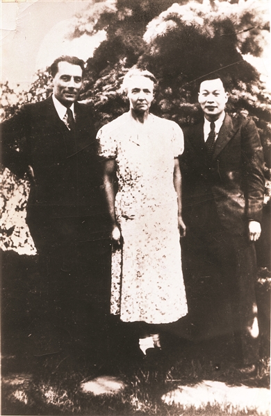 錢三強(右)回國前與(yu) 導師約裏奧-居裏夫婦合影。