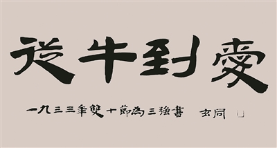父親(qin) 錢玄同為(wei) 錢三強書(shu) 寫(xie) 的“從(cong) 牛到愛”。
