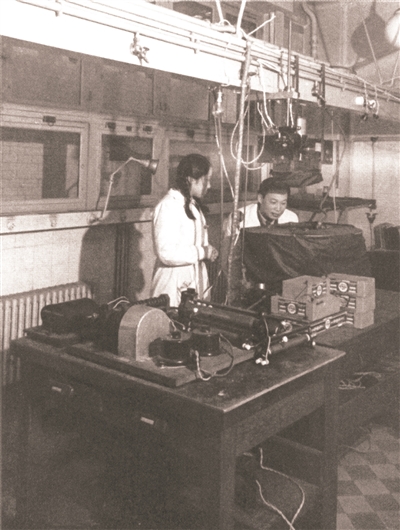 1946年,錢三強與(yu) 何澤慧在居裏實驗室做鈾核“三分裂”實驗。