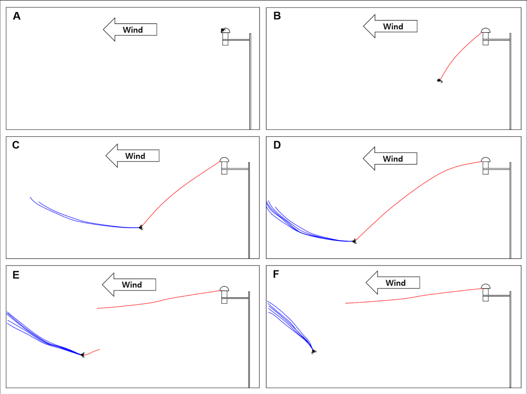 一段時間後,小蜘蛛鬆開原本牢牢抓住的表麵,同時將所有腿向外伸展,然後斜斜地向遠處飛去。在飛航過程中,蜘蛛也不忘“抓緊”安全線。直到飛至 3~5 米遠,安全線才會(hui) 斷掉。如果在起飛前,天氣條件突然變得不適合飛航,它還會(hui) 立即切斷蛛絲(si) ,重新等待合適的時機。