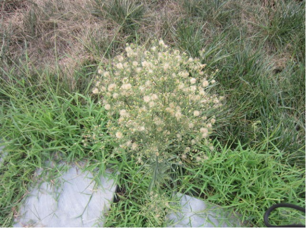 小飛蓬,又名小蓬草、加拿大蓬、飛蓬、小白酒草,隸屬於(yu) 雙子葉植物綱菊目菊科,是一年生或二年生草本。小飛蓬原產(chan) 於(yu) 北美洲,1860年我國山東(dong) 煙台首次發現其植株,隨後幾年,小飛蓬在南方各省頻頻出現,現已在全國分布。小飛蓬株高為(wei) 40cm—120cm,莖直立,莖具粗糙毛和細條紋,葉互生,頭狀花序密集成圓錐狀或傘(san) 房圓錐狀。小飛蓬依靠種子繁殖,種子結實量大,能大範圍地迅速入侵擴散,但無法進行根莖等部位的無性繁殖。小飛蓬可以產(chan) 生大量瘦果,這種果子有一種叫做介冠毛的物質,如同從(cong) 飛機上跳下的大量傘(san) 兵,在風中迅速被吹散,並以覆蓋的形式蔓延在植物上。2014年8月,小飛蓬正式被列入中國《第三批外來入侵物種名單》中。近年來,小飛蓬在很多地區的發生麵積快速增長,如不及時治理,可能造成較大危害。