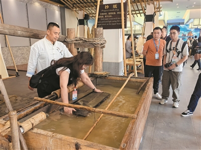 向蔡倫(lun) 坐像敬獻花籃、行鞠躬禮後,與(yu) 會(hui) 嘉賓、遊客紛紛走進以油紙傘(san) 、嶽州扇、南嶽剪紙、灘頭年畫等非遺傳(chuan) 承項目為(wei) 載體(ti) 匯聚成的紙文化長廊,參觀蔡倫(lun) 紀念館,在蔡倫(lun) 古法造紙技藝傳(chuan) 習(xi) 所體(ti) 驗古法造紙技藝的精妙,感受中華傳(chuan) 統文化的魅力。