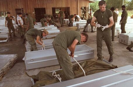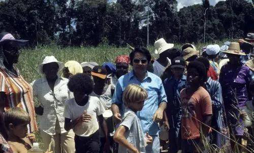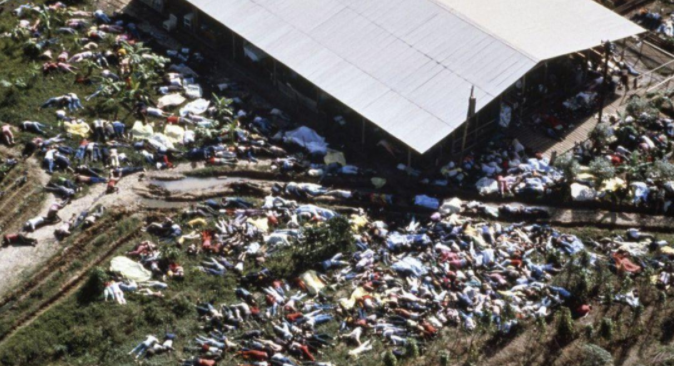 ▲1978年11月18日,“人民聖殿教”製造的瓊斯鎮自殺 慘案現場