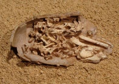 除了硬殼的恐龍蛋化石(原角龍為(wei) 軟殼)之外,某些已滅絕動物的軟殼蛋化石也因得天獨厚的埋藏條件而保存下來。