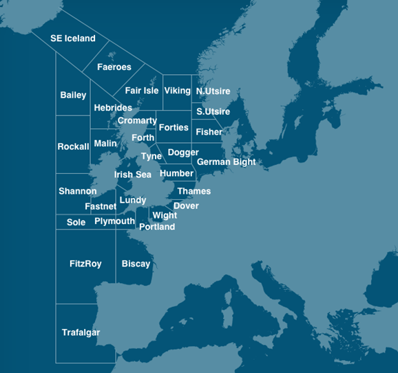 BBC海上天氣預報區域圖,左下角的FitzRoy區域即為(wei) 紀念菲茨羅伊而改名的區域 圖源:bbc.com