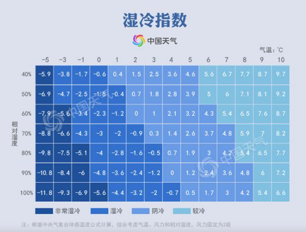濕冷指數。圖片來源:中國天氣
