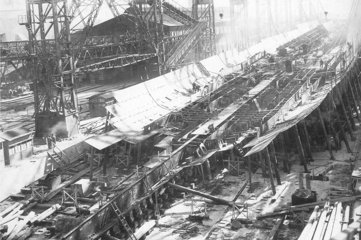 ▲ 日本1938年建造“翔鶴”號航母的場景。