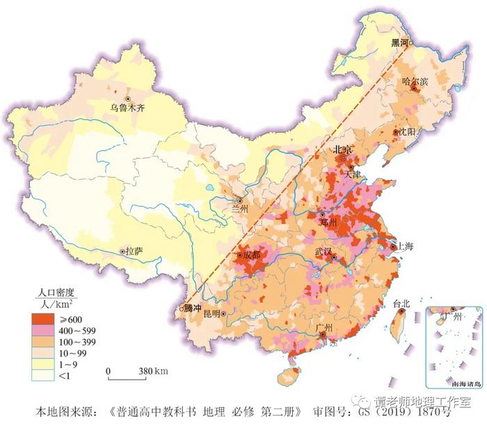 ▲中國人口密度突變示意圖。(引自地理公社)