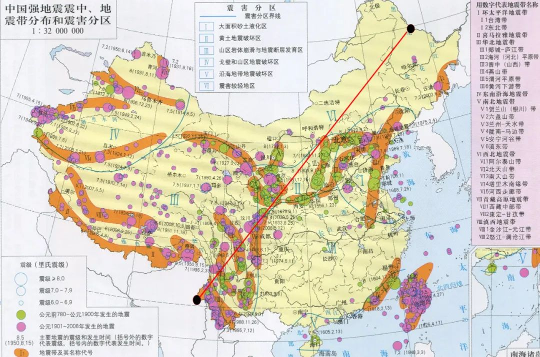 ▲胡煥庸線與(yu) 地震分布圖疊合圖。(引自網絡)