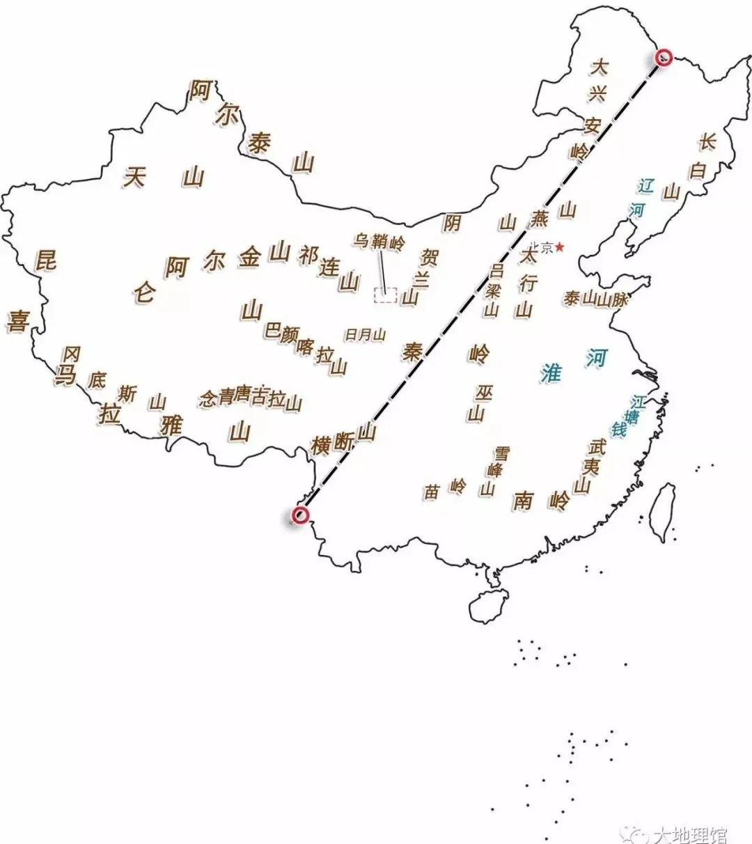 這條大致呈45度的斜線,將中國版圖左東(dong) 右西一分為(wei) 二,所以筆者將其稱為(wei) 中國的對角線。