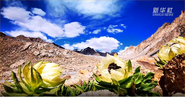 資料圖片:生長在喀爾裏克冰川的雪蓮花