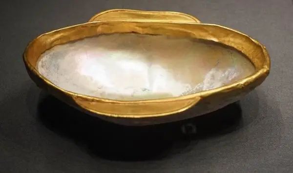 青海西寧南灘磚瓦廠十六國墓出土金釦蚌殼羽觴(圖源:《博物院》雜誌)