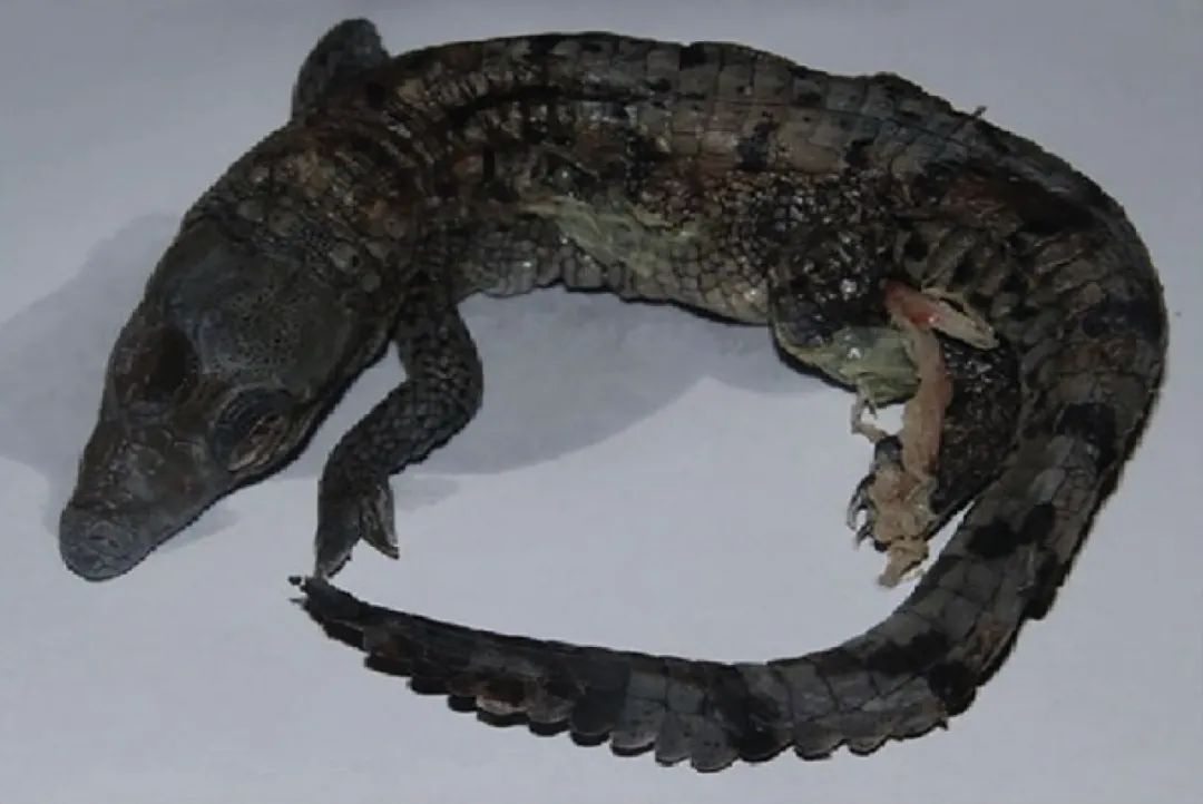 經過三個(ge) 月的人工孵化,蛋還沒有成功孵化,於(yu) 是研究人員把蛋打開了,在一個(ge) 蛋裏發現了一隻完全成形的鱷魚寶寶。