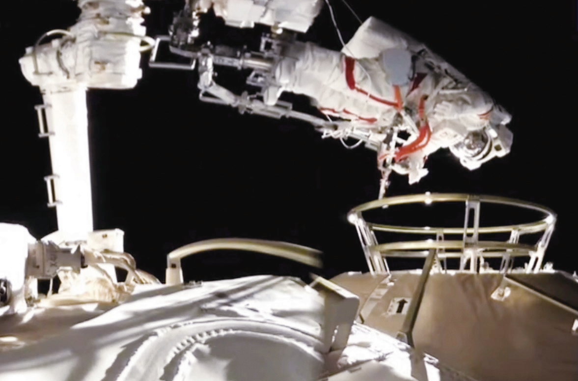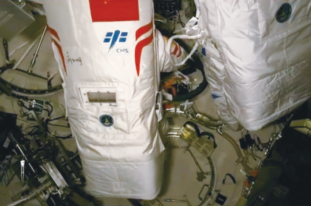 經曆幾個(ge) 小時的準備,航天員成功開啟外艙門,正式開展艙外活動。