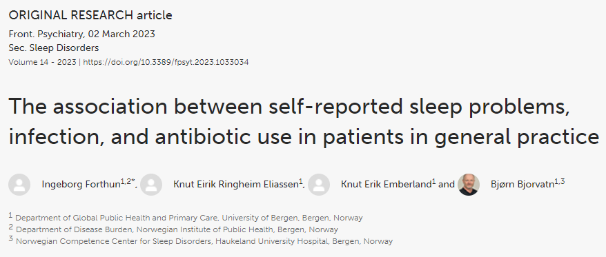 挪威卑爾根大學的研究人員在" Frontiers in Psychiatry "期刊上發表了一篇題為(wei) " The association between self-reported sleep problems,infection,and antibiotic use in patients in general practice "的研究論文。