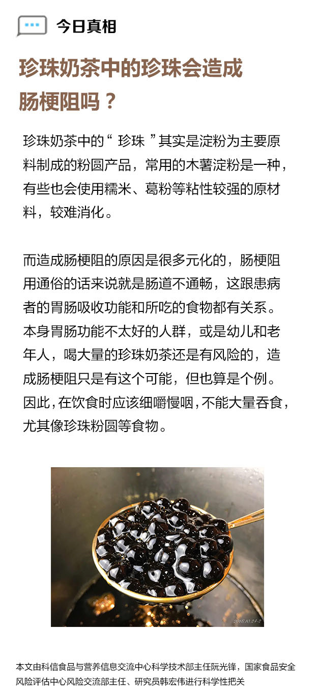 科學辟謠:珍珠奶茶中的珍珠會造成腸梗阻