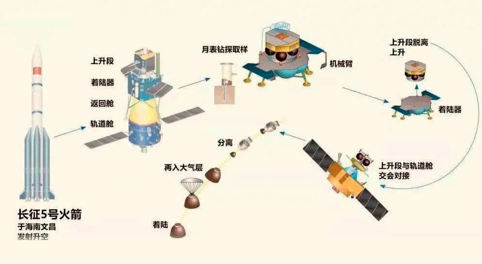 “嫦娥五號”任務由運載發射、地月轉移、近月減速、環月飛行、月麵著陸、月麵采樣、月麵上升、交會(hui) 對接、環月飛行、月地轉移、軌道分離、再入回收等階段構成。在這些階段,同樣需要大數據提供全麵保障和數據支撐。