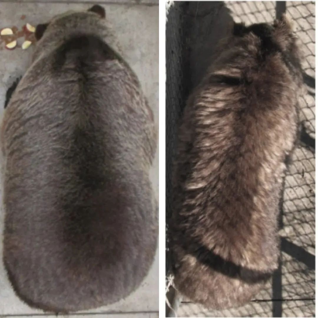 同一隻熊,十月份冬眠前的樣子(左),次年四月份冬眠結束後的樣子(右) | 圖片來源:WSU Bear Center