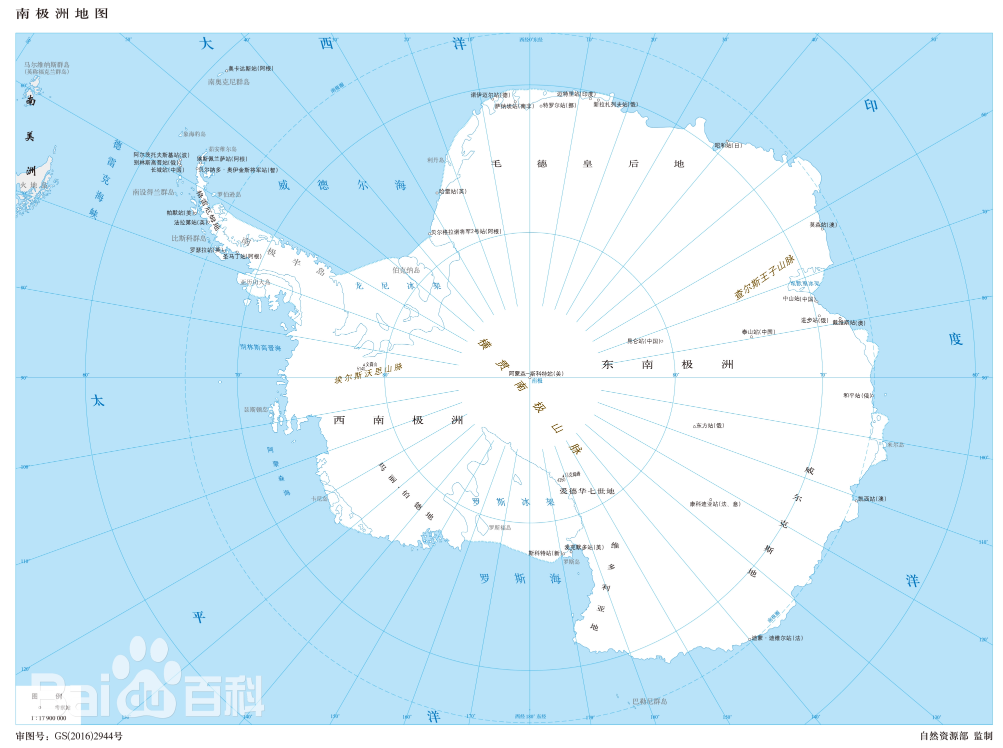 南極地區主要位於(yu) 南極圈以南,包括南極洲及其周邊的海域,南極大陸的標高則平均在1500公尺左右,地形以高原為(wei) 主,主要有毛德皇後地、威爾克斯地、維多利亞(ya) 地、瑪麗(li) ·伯德地、埃爾斯沃思地、南極半島、羅斯福島、伯克納島、橫貫南極山脈、南極高原等。南極大陸幾乎都被巨大的大陸冰河所覆蓋,且冰層的平均厚度約為(wei) 1700公尺,最厚的地方則高達2800公尺。這裏的冰占了全世界總量的90%左右,約為(wei) 北極海冰量的10~8倍,如果南極洲的冰全部溶化流入海中,將會(hui) 使全球的海平麵上升60~80公尺。除了嚴(yan) 寒之外,南極地區還被稱為(wei) 地球上的“白色荒漠”,年平均降水量為(wei) 55毫米,降水量最少的地方不足5毫米,並且南極地區也被稱為(wei) 地球上的“風庫”,年平均風速沒17~18米/秒,最大風速可達100米/秒。