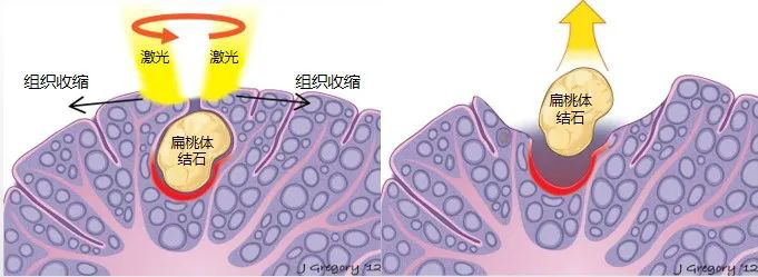 正因結石是發自扁桃體(ti) 隱窩,於(yu) 是有一些采用CO2激光燒灼、熱力學破壞(等離子)等方法開放扁桃體(ti) 隱窩、以期減少扁桃體(ti) 結石生成的報道。小規模研究表明此法效果良好。