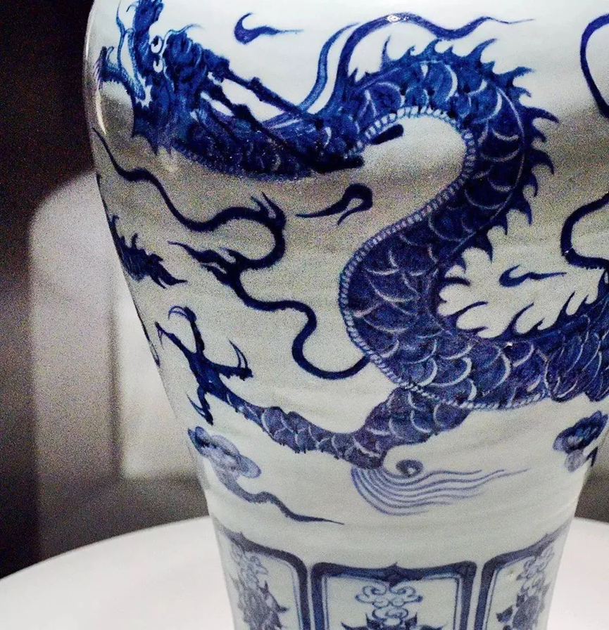 到了元代,入主中原的蒙古人將龍變成了皇家禁臠,徹底壟斷了“用龍”權,非皇家者穿龍鳳紋要判刑。但是,上有政策,下有對策。五爪二角的是龍,那麽(me) ,非五爪二角的龍形生物,就不是“皇家龍”,民間可以“鑽空子”了。於(yu) 是,在蜚聲海內(nei) 外的元青花上,我們(men) 看到了三爪“龍”;四爪“龍”也可以在文人畫裏作為(wei) 抵抗的象征,自由奔走。