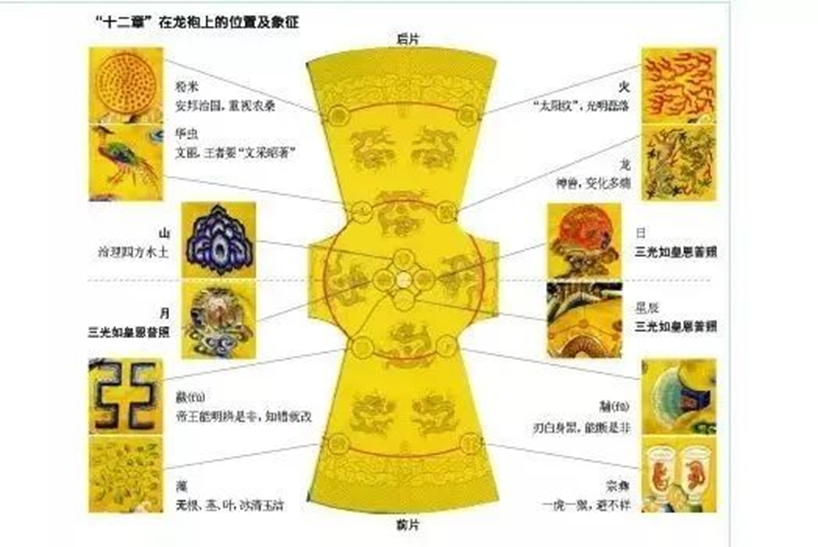 而在清龍袍中,又以皇帝禦用的“品”字形、九條龍紋、十二章紋裝飾及四開裾的袍服最富時代特征。