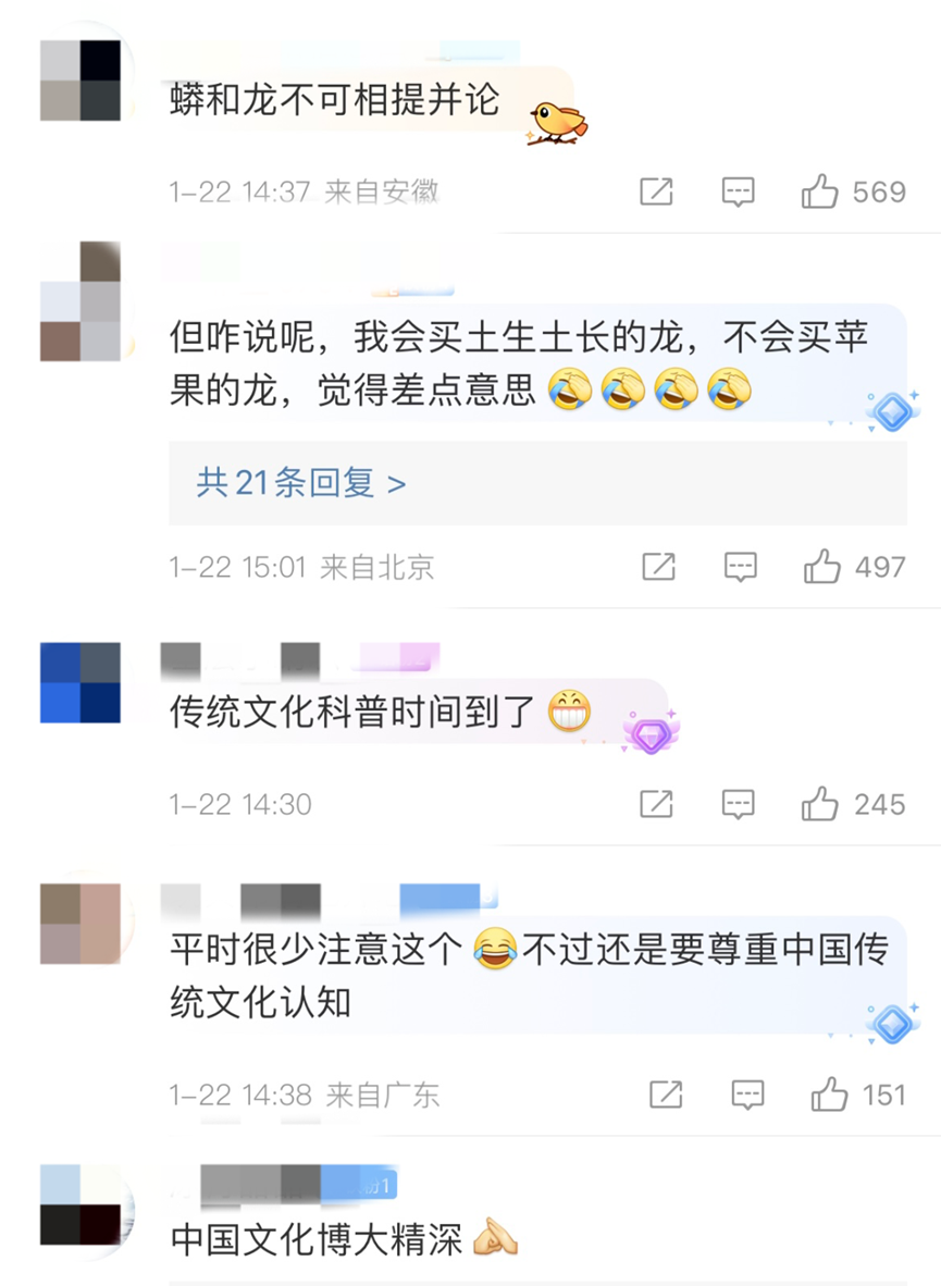 近日,蘋果上線一款“龍年特別版”手機殼。有網友指出:中國傳(chuan) 統文化裏,“五爪為(wei) 龍 四爪為(wei) 蟒”,實為(wei) 指蟒為(wei) 龍。