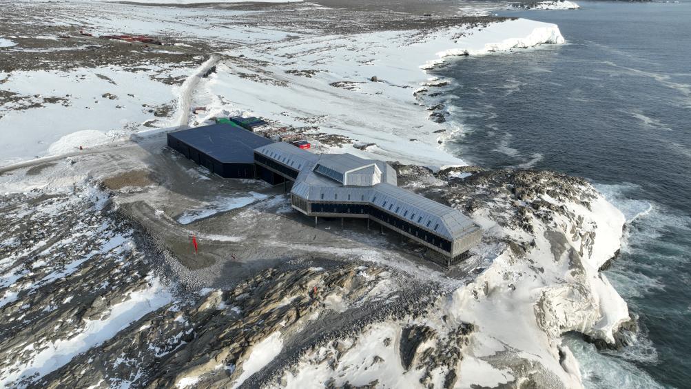 2024年2月6日拍攝的中國南極秦嶺站。新華社發(張體(ti) 軍(jun) 攝)