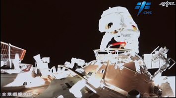 神舟十三號航天員身著“飛天”出艙畫麵(圖片來源:中國載人航天官網)