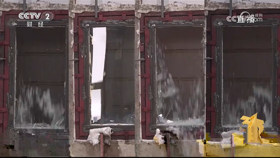 不合格的防火玻璃遇高溫很快碎裂(來源:315晚會(hui) 截圖)