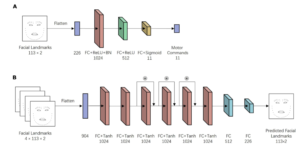 另外,他們(men) 還開發了兩(liang) 個(ge) 人工智能模型:其中一個(ge) 通過分析目標麵部的細微變化預測人類麵部表情,另一個(ge) 則利用相應的麵部表情生成運動指令。第一個(ge) 模型是通過觀看網絡視頻進行訓練的,而第二個(ge) 模型則是通過讓機器人觀看自己在實時攝像機畫麵上的表情來訓練的。他們(men) 通過與(yu) 其他基線進行定量評估,證明了這兩(liang) 個(ge) 模型的有效性。